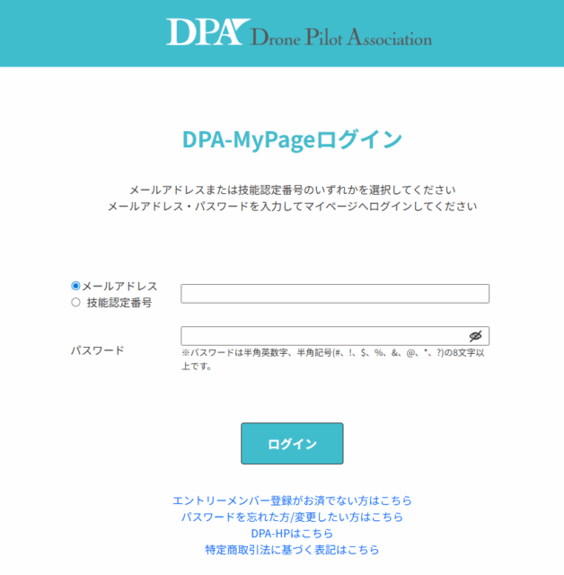 更新は、DPAホームページからマイページにログインいただくことでできます。