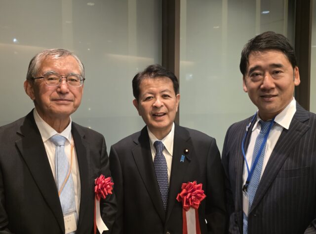 当日は、式典ののち、交流会が開催されて、自民党衆議院議員元農林大臣の宮下一郎様、協会の福盛田共義会長と、DPAで意見交換を行い、Smart農業に向けたドローンの重要性を確認いたしました。